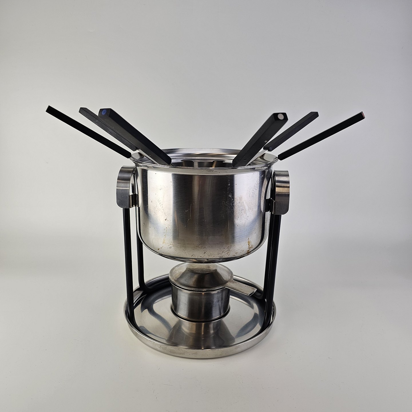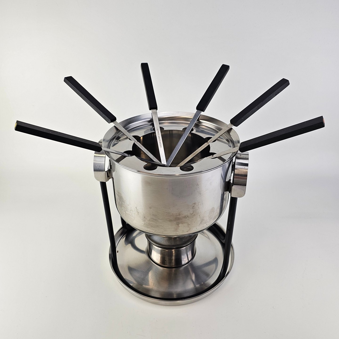 Stelton fonduesæt i rustfrit stål inklusiv stander, brænder, gryde og seks fondue gafler