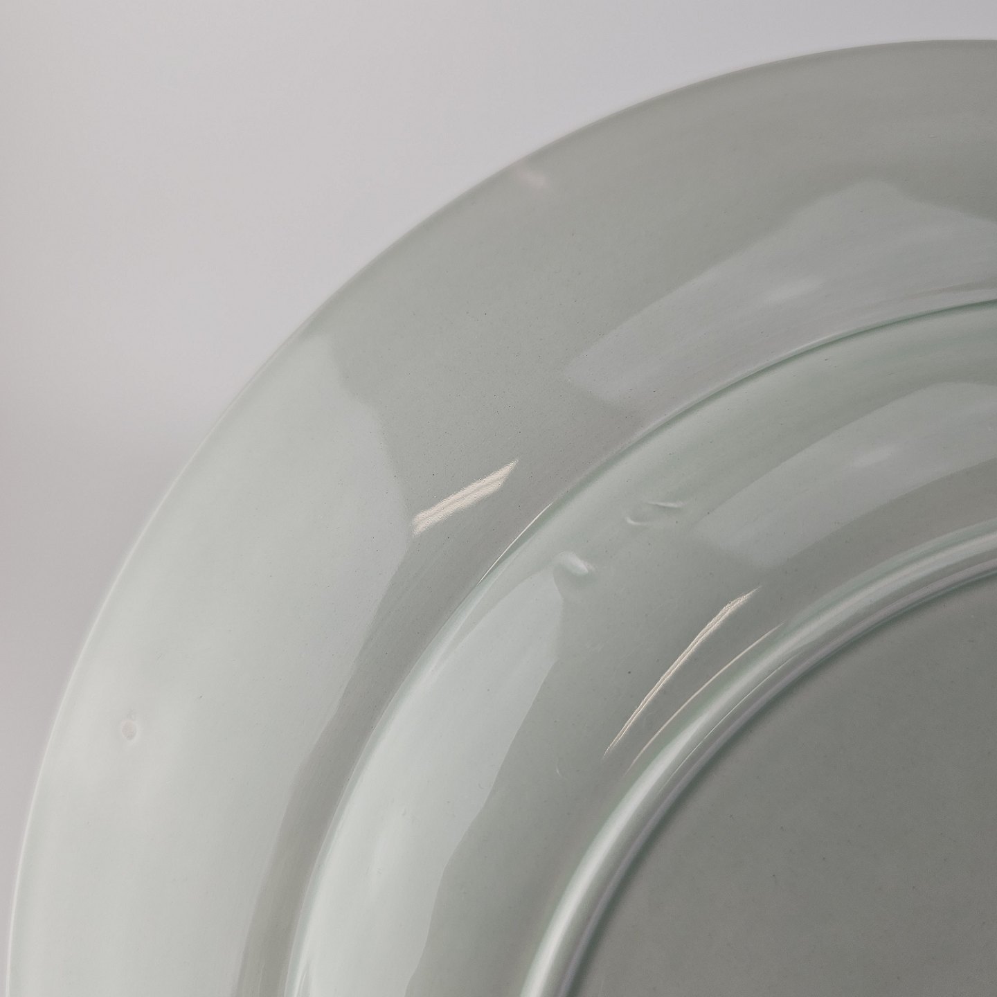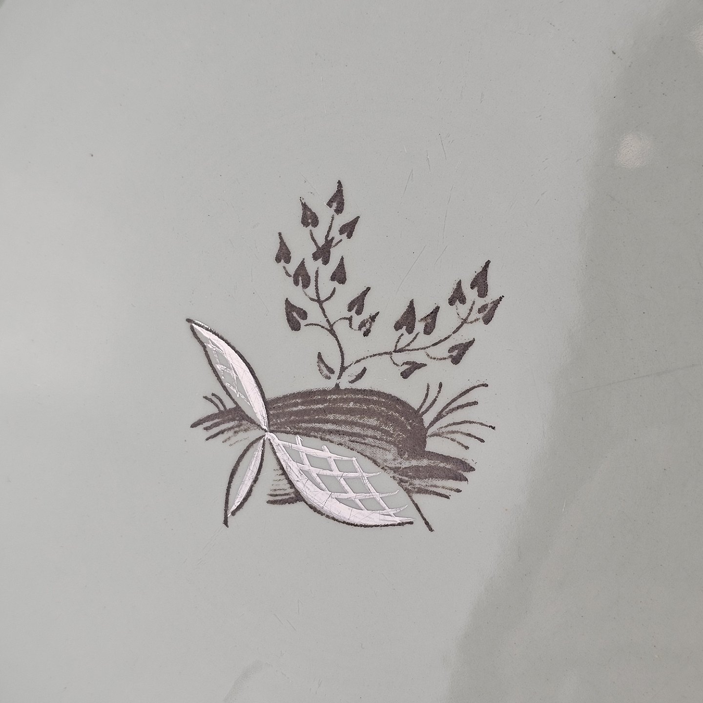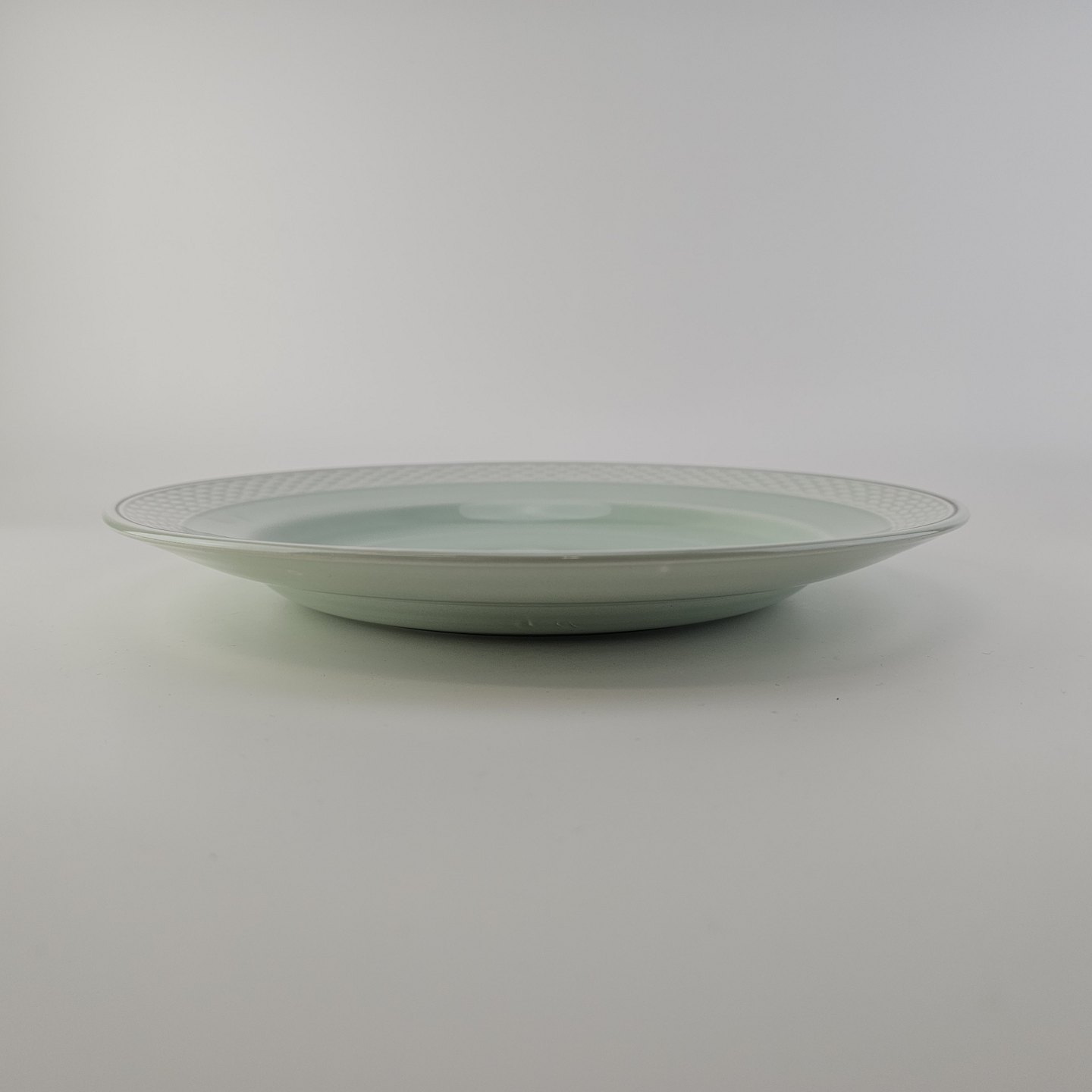 Stel i lysegrøn fajance med natur dekoration og flettet kant
