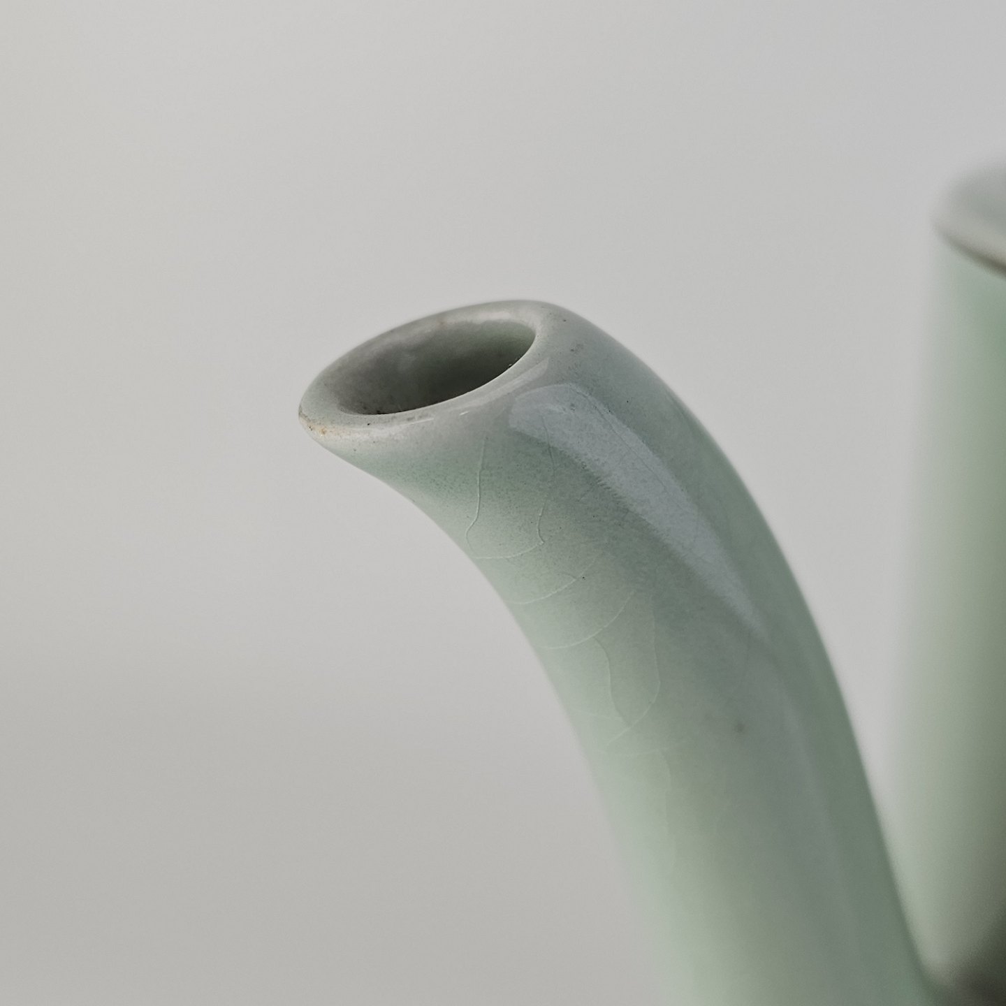 Stel i lysegrøn fajance med natur dekoration og flettet kant