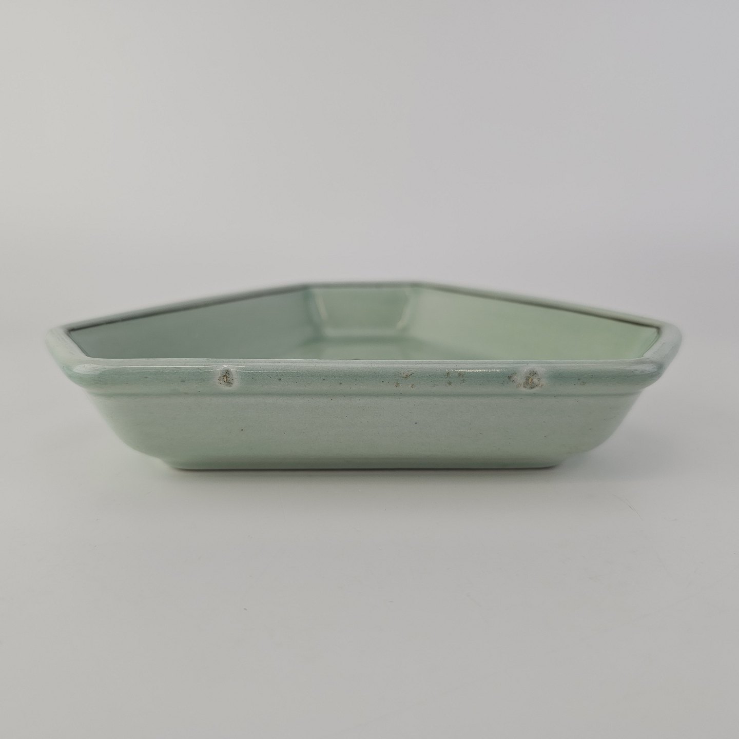 Stel i lysegrøn fajance med natur dekoration og flettet kant