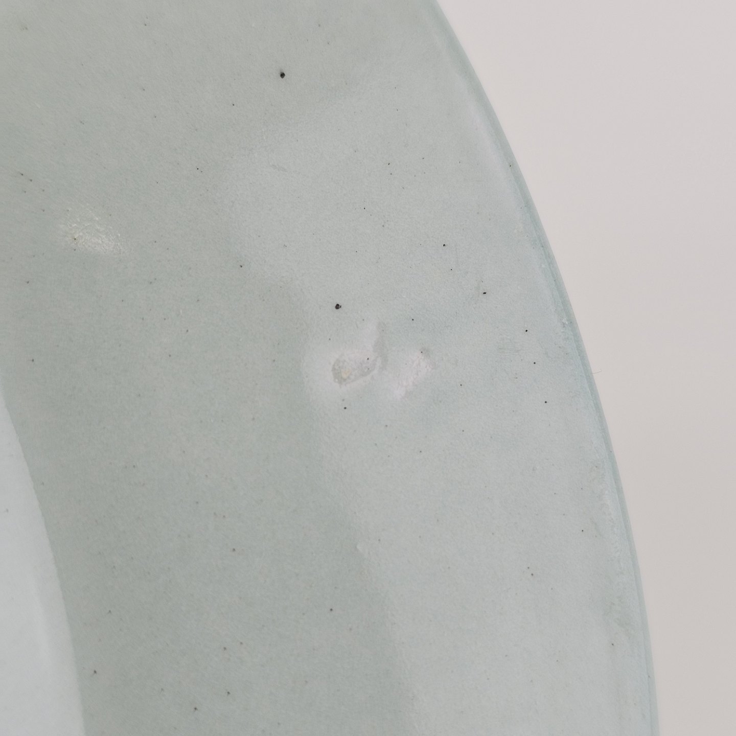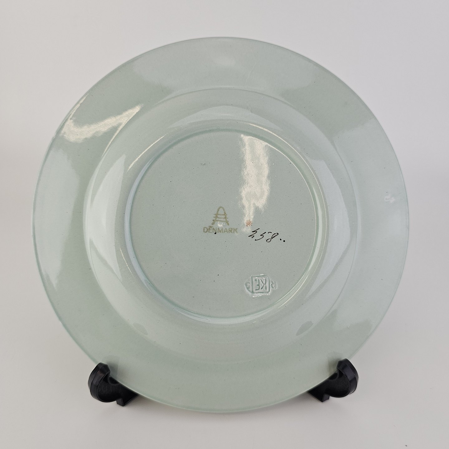 Stel i lysegrøn fajance med natur dekoration og flettet kant