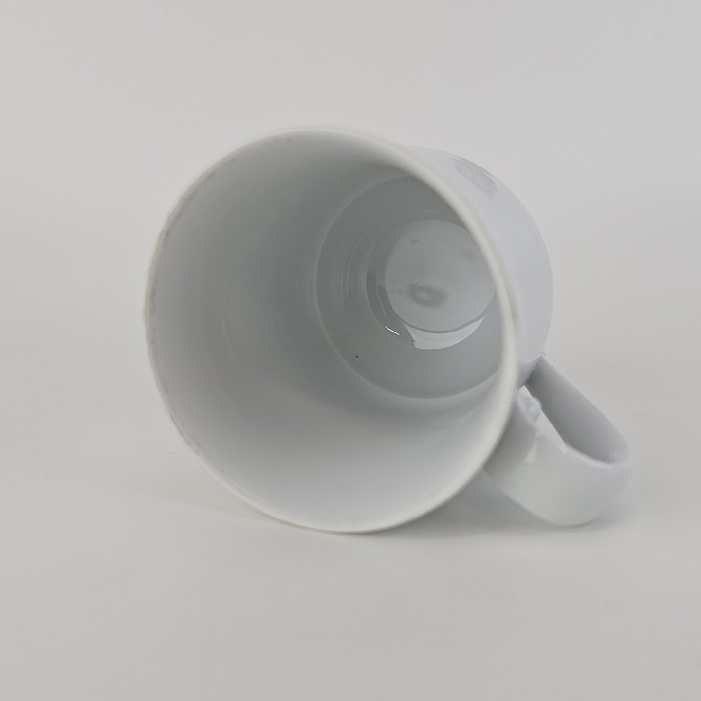Høj kop med underkop i hvidt kongeligt porcelæn