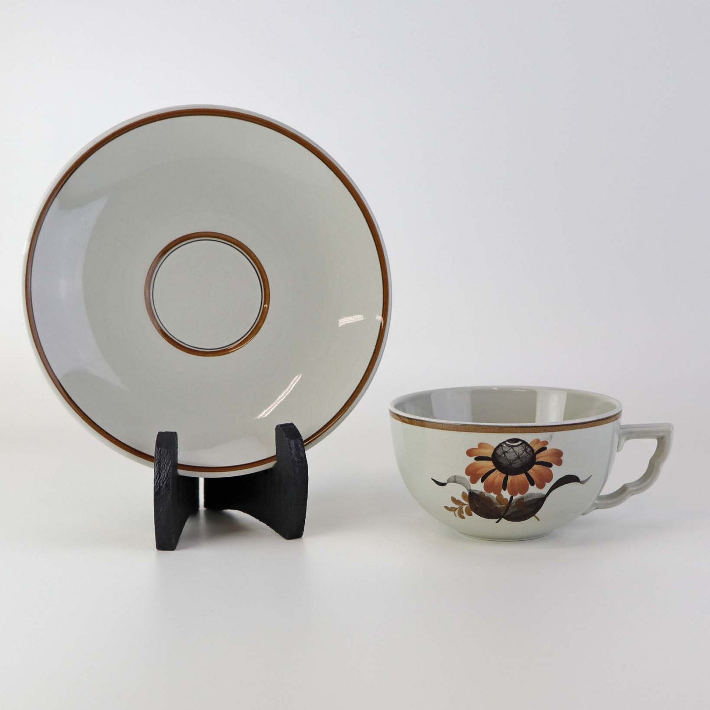Tekop med underkop i fajance fra stellet Kirsten, som blev fremstillet i perioden 1934-1957. Nr. 263