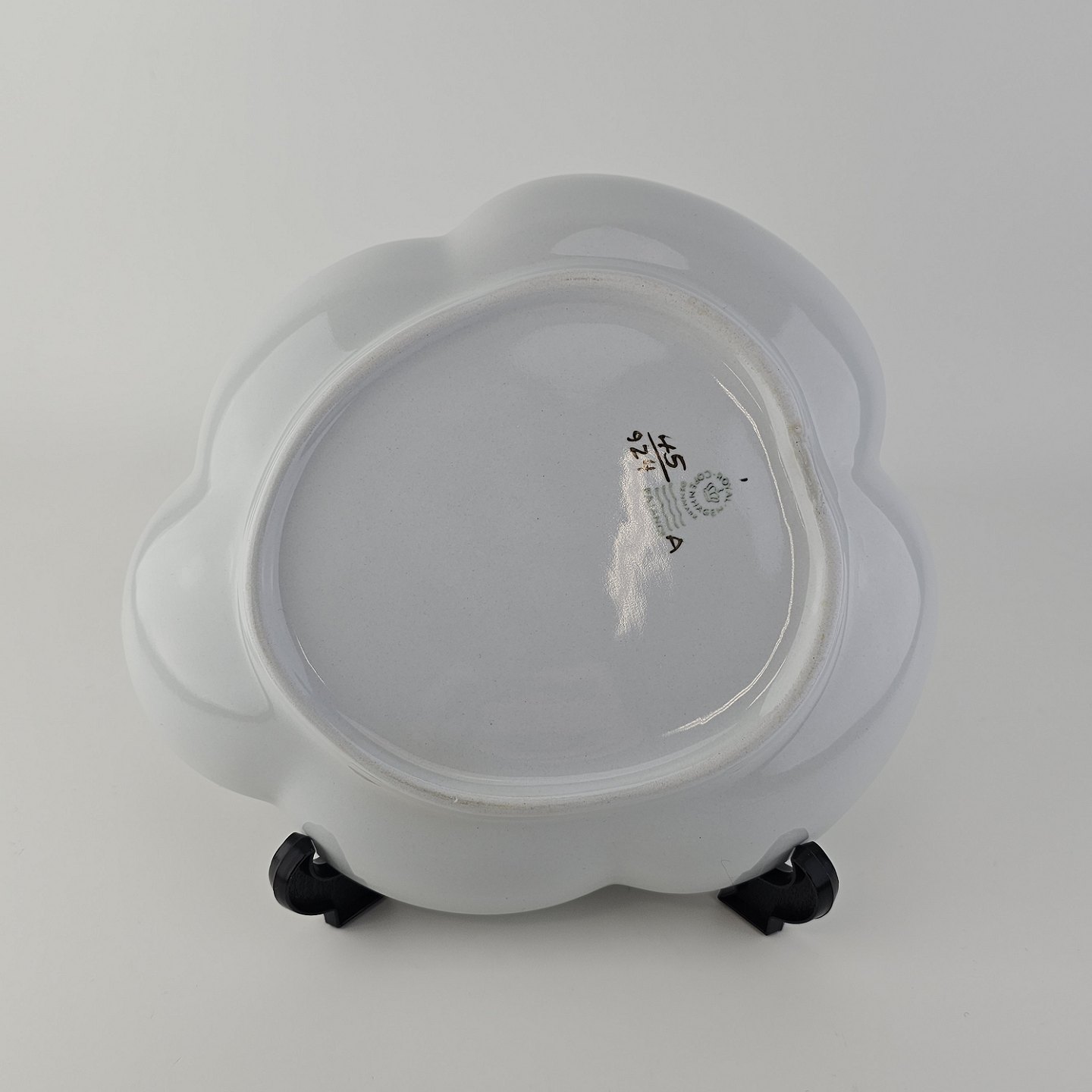 Fajancestellet med flettet kant og dekoration af brune blomster på lys baggrund med brun kant