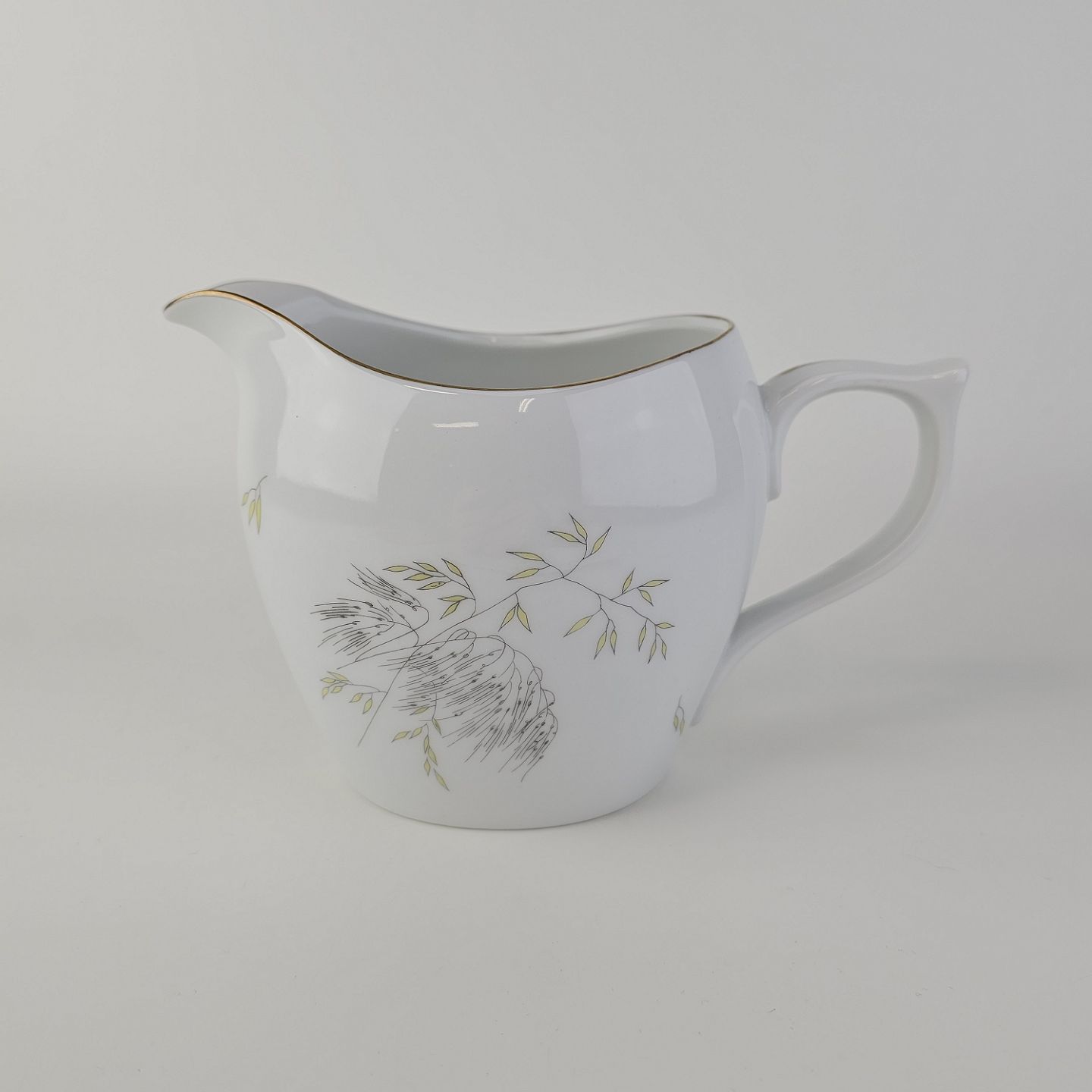 Service i hvidt porcelæn med motiv af blomster og guldkant