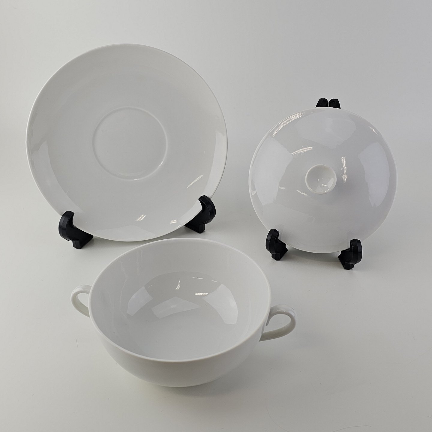Bouillonkop med låg og underkop i glat hvidt porcelæn