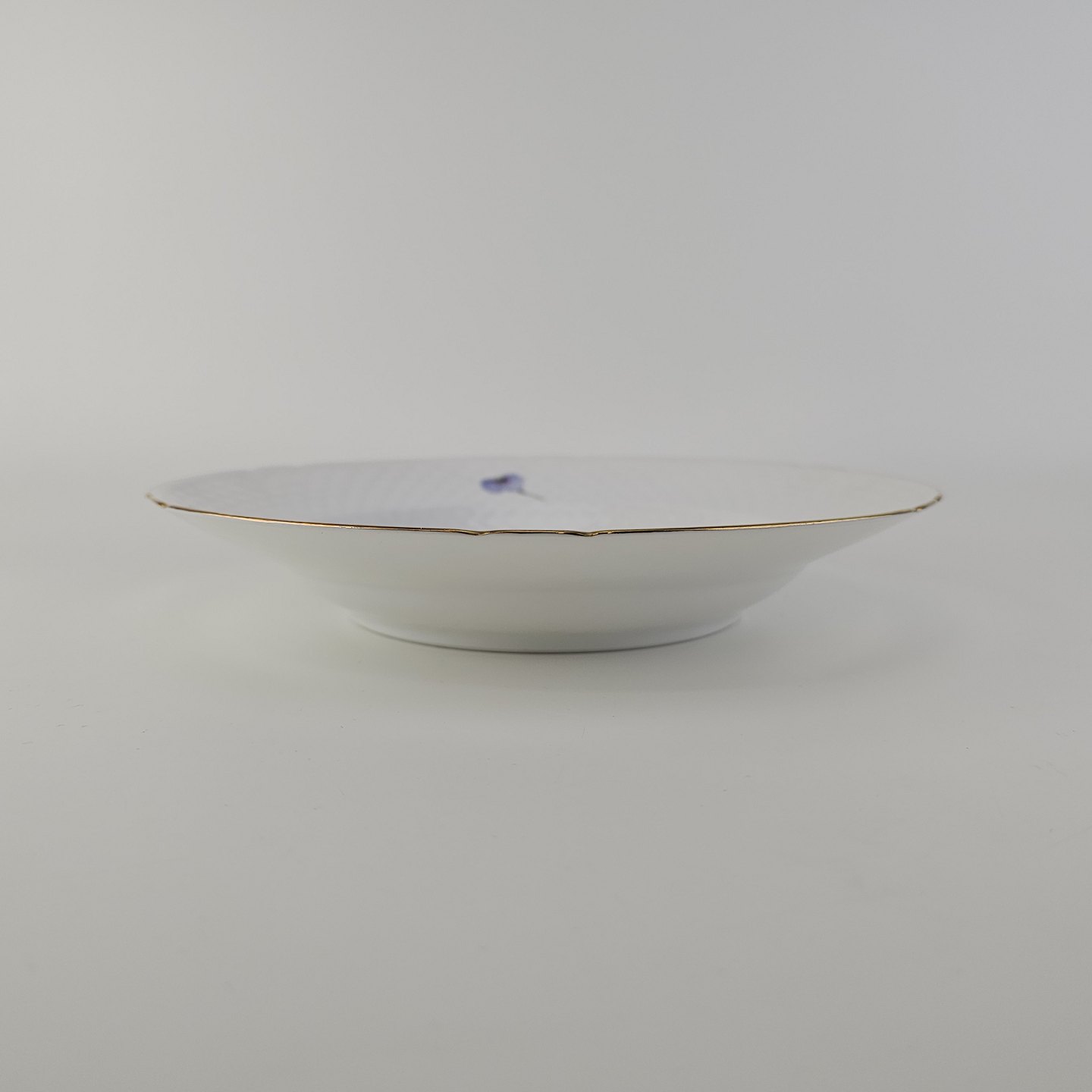 Antonius er af hvidt porcelæn med skælform dekoreret med håndmalede blå anemoner og guldkant. Også kendt under navnet Blå Anemone.