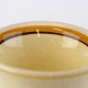 Glat fajancestel med dekoration i brune og gule farver på lys bagggrund med mørkebrun streg.