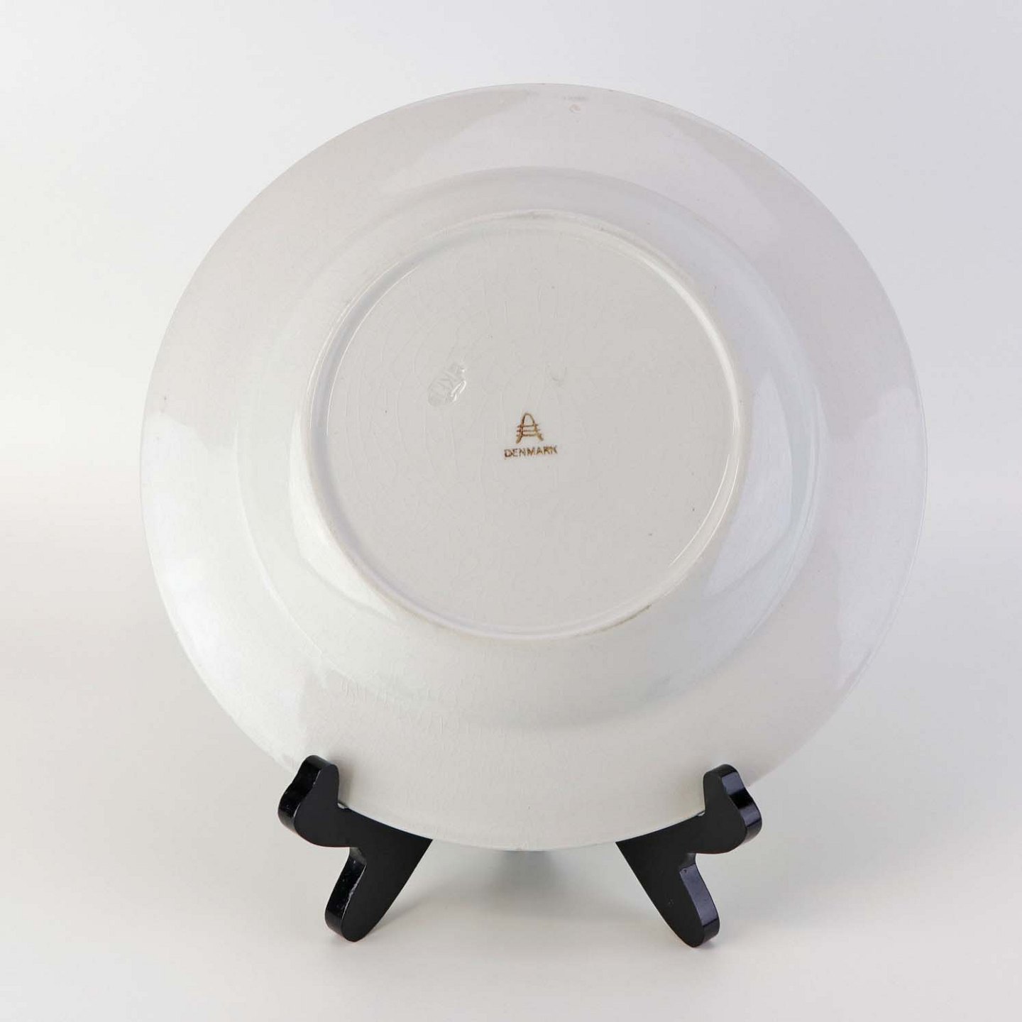 Dyb suppetallerken i fajance fra Hjortestellet Convolvolus, som blev fremstillet i perioden 1930-1940