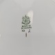 Krysantemum er hvidt porcelæn dekoreret med lys lilla blomst, grønne blade og guldkant.