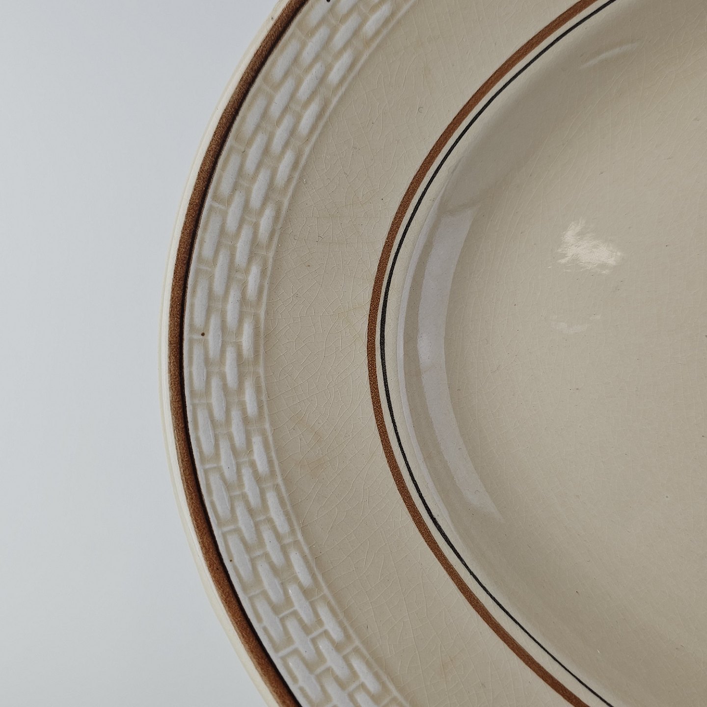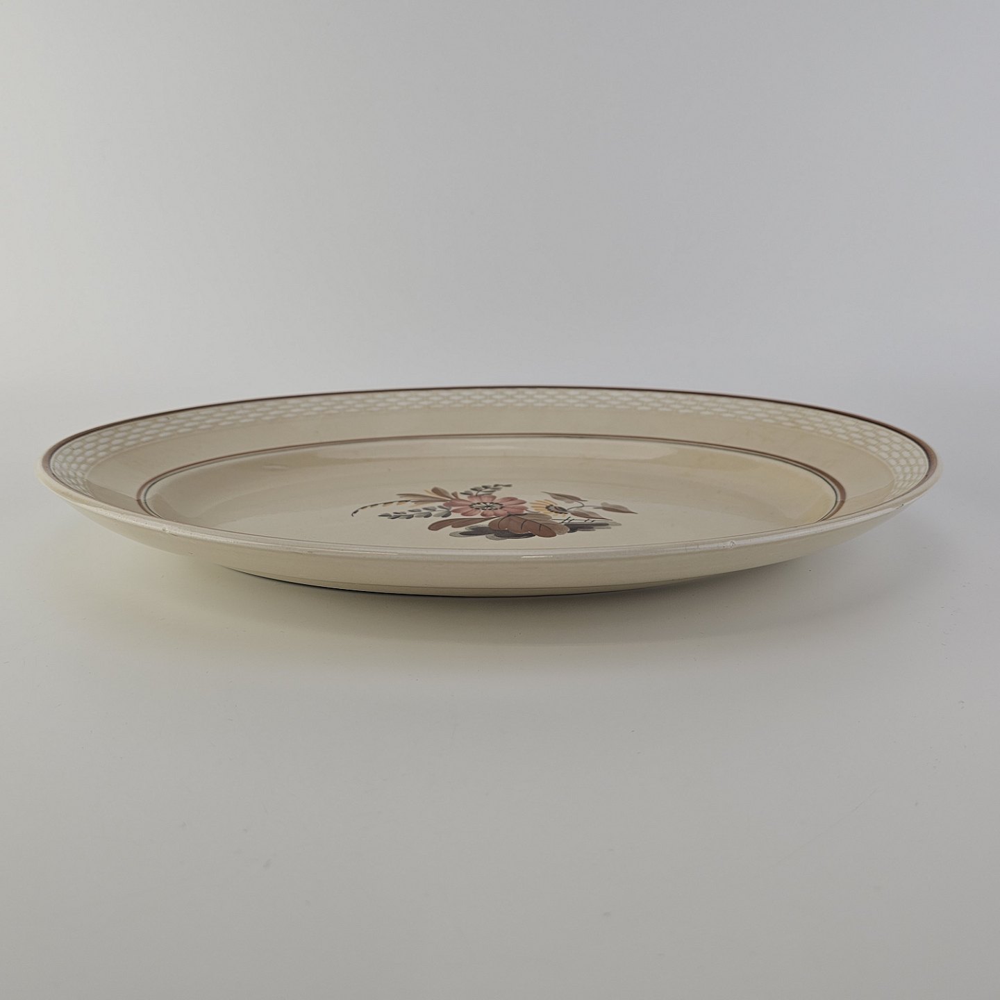 Knud er cremefarvet fajance dekoreret med flettet kant og brune og orange blomster. Stellet blev produceret i år 1934-1963.