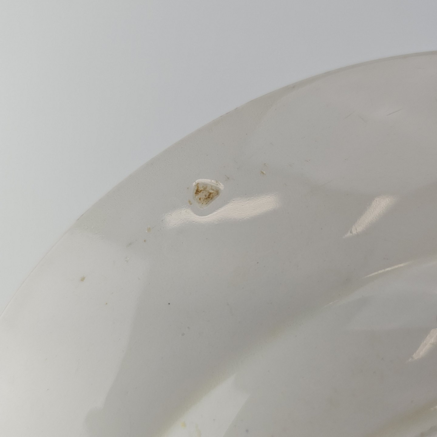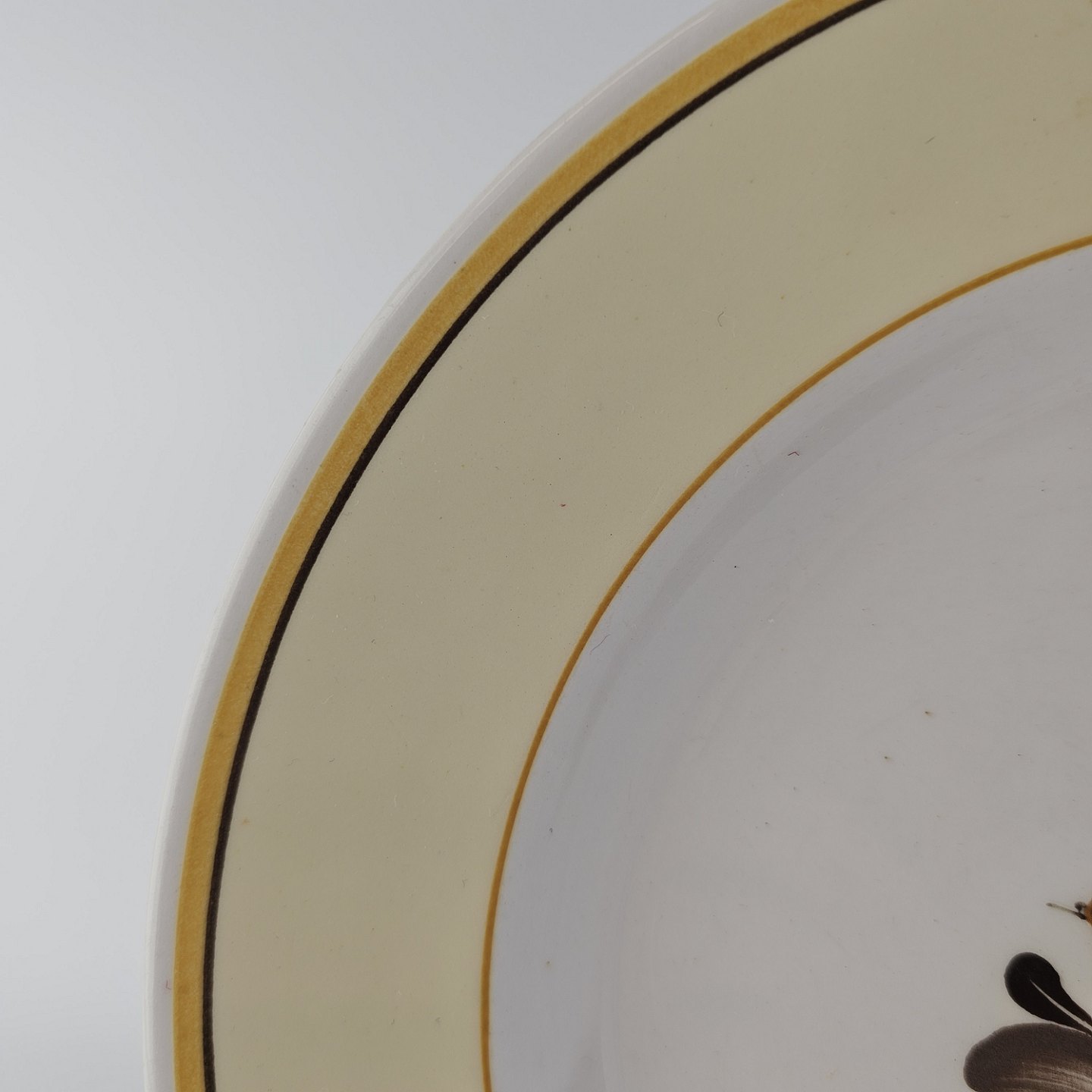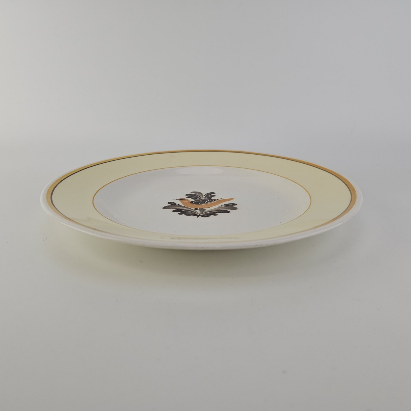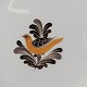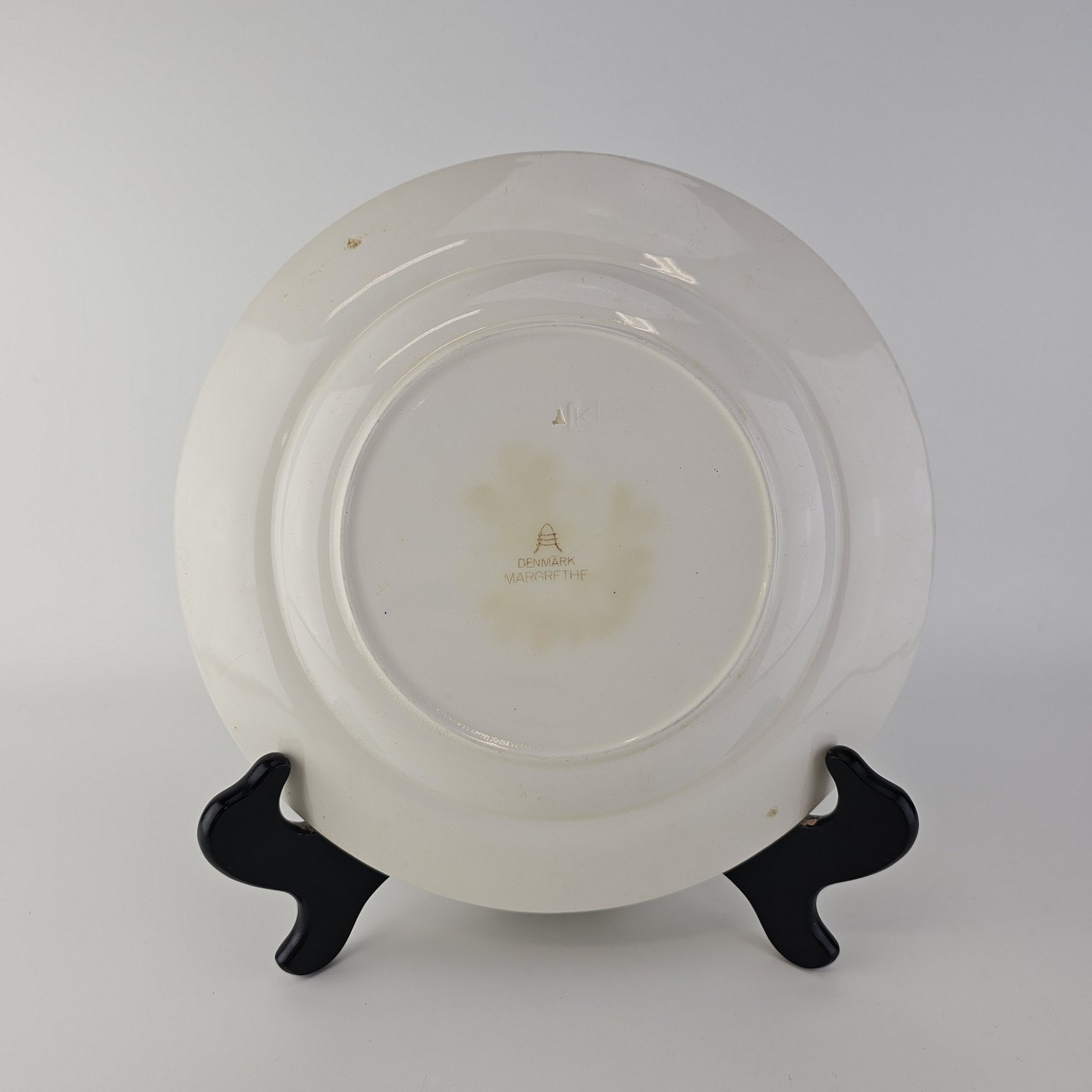 Flad middagstallerken i fajance fra stellet Margrethe fremstillet i perioden 1937-1940.