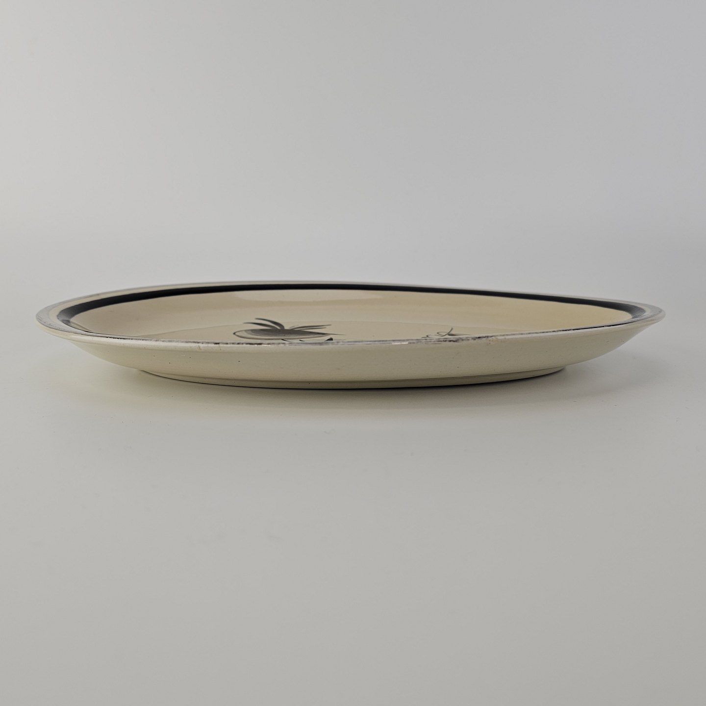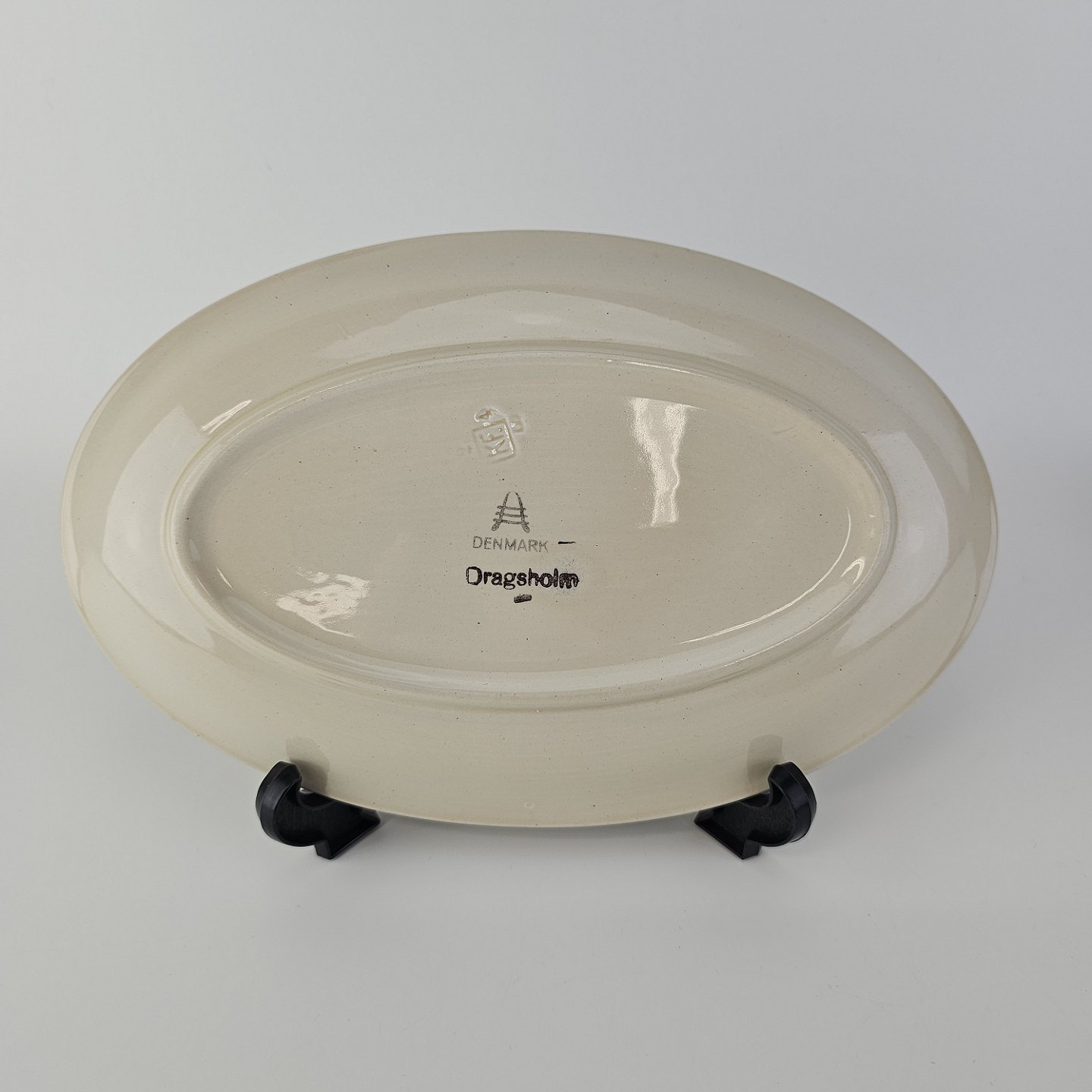 Ovalt fad i fajance fra stellet Dragsholm fremstillet i perioden 1934-1965.