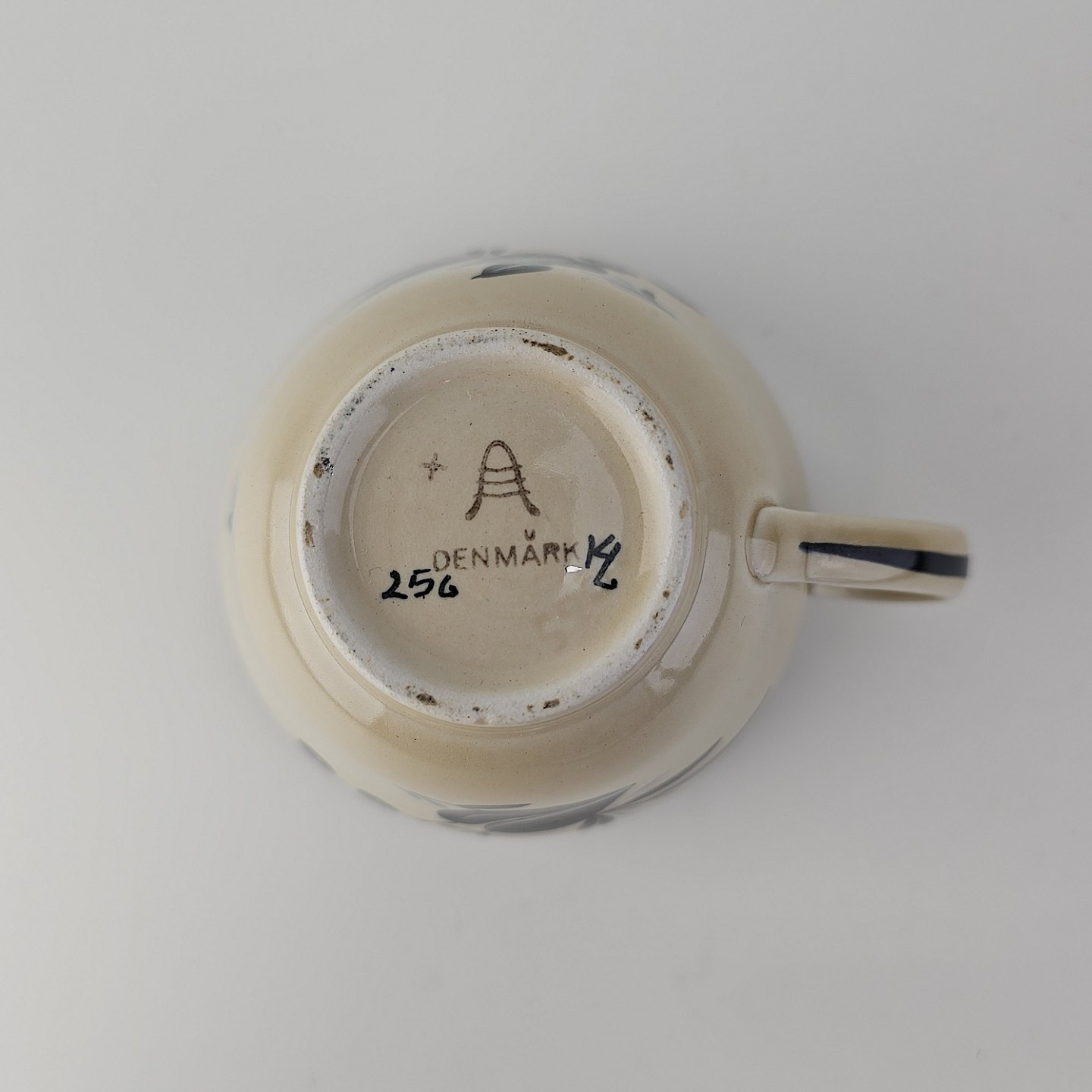 Tekop med underkop i fajance fra stellet Dragsholm fremstillet i perioden 1934-1965.