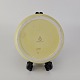 Fajancestel i stelform C med dekoration i gule nuancer med grøn stribe.