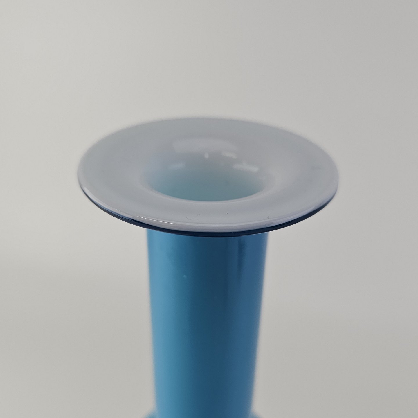 Vase i opal hvid mundblæst glas med blåt overfang