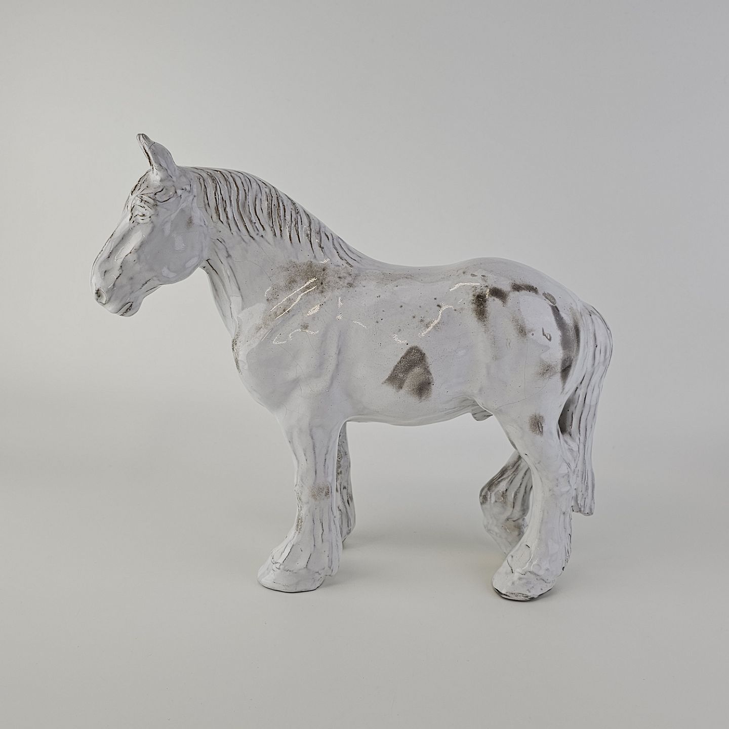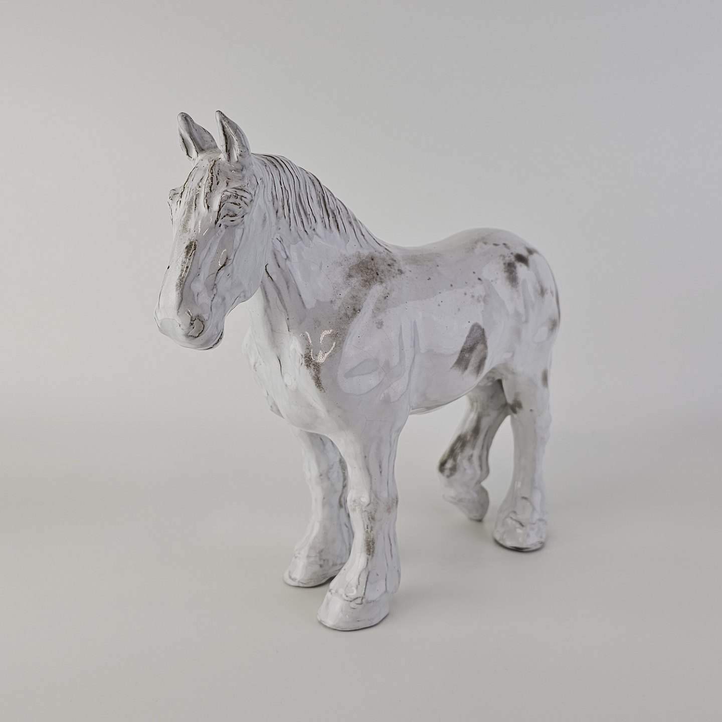 Figur af en hvid hest i porcelæn