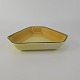 Fajancestel i stelform C med dekoration i gule nuancer med grøn stribe.
