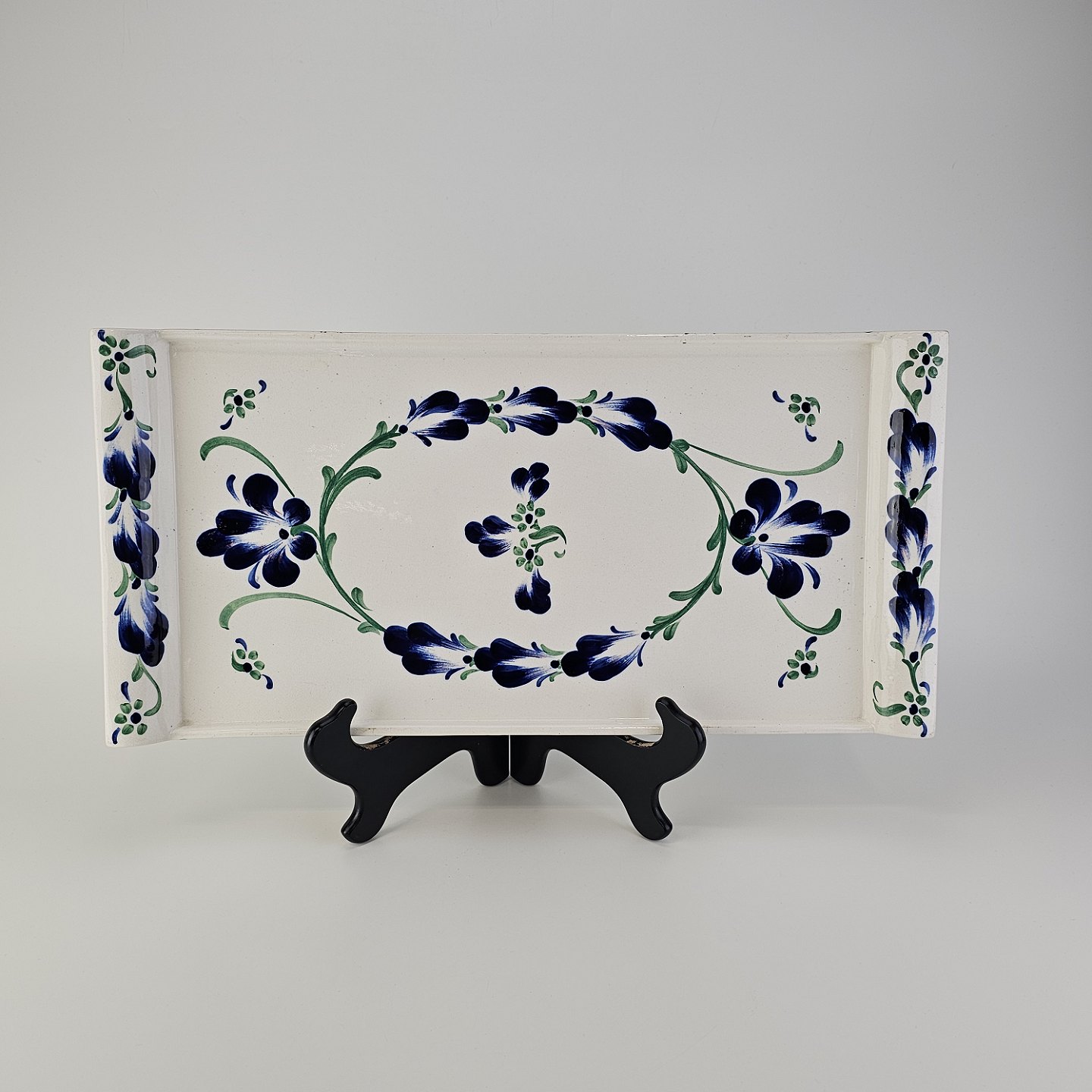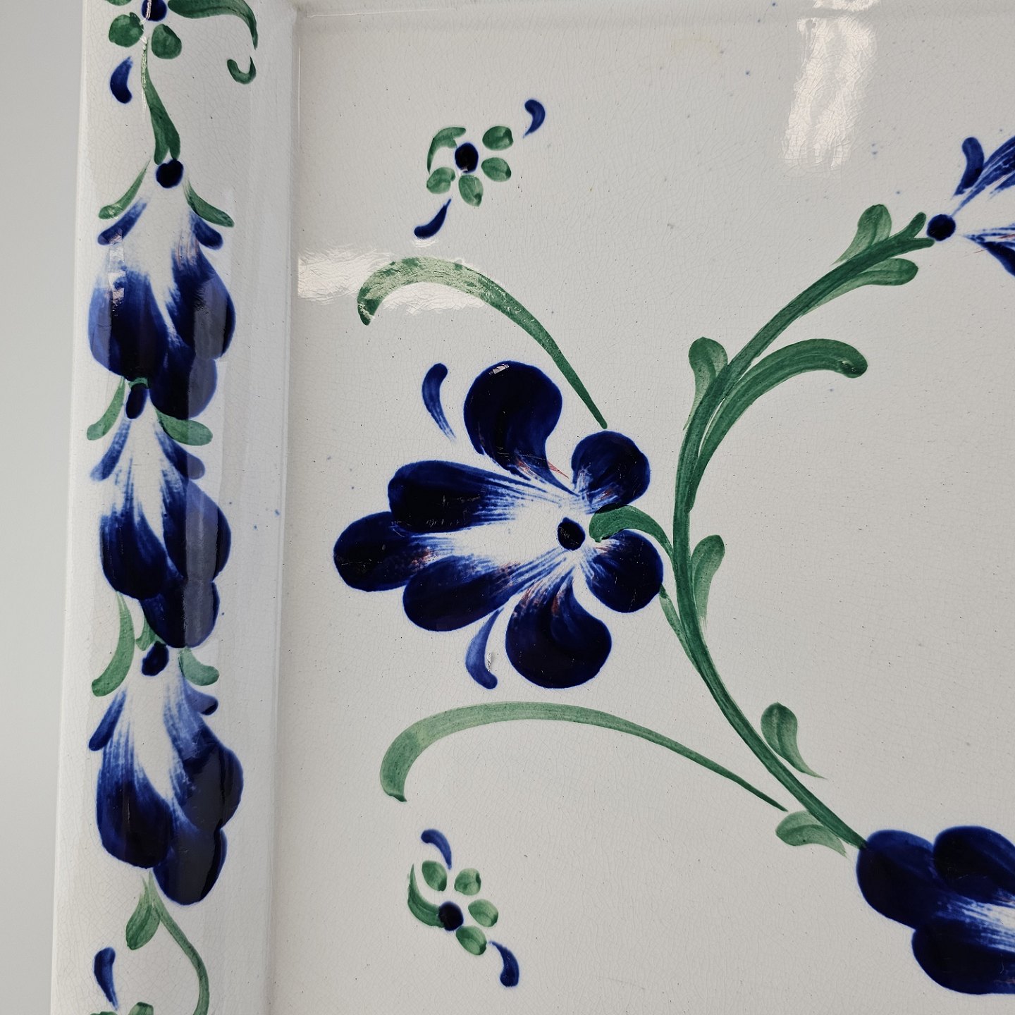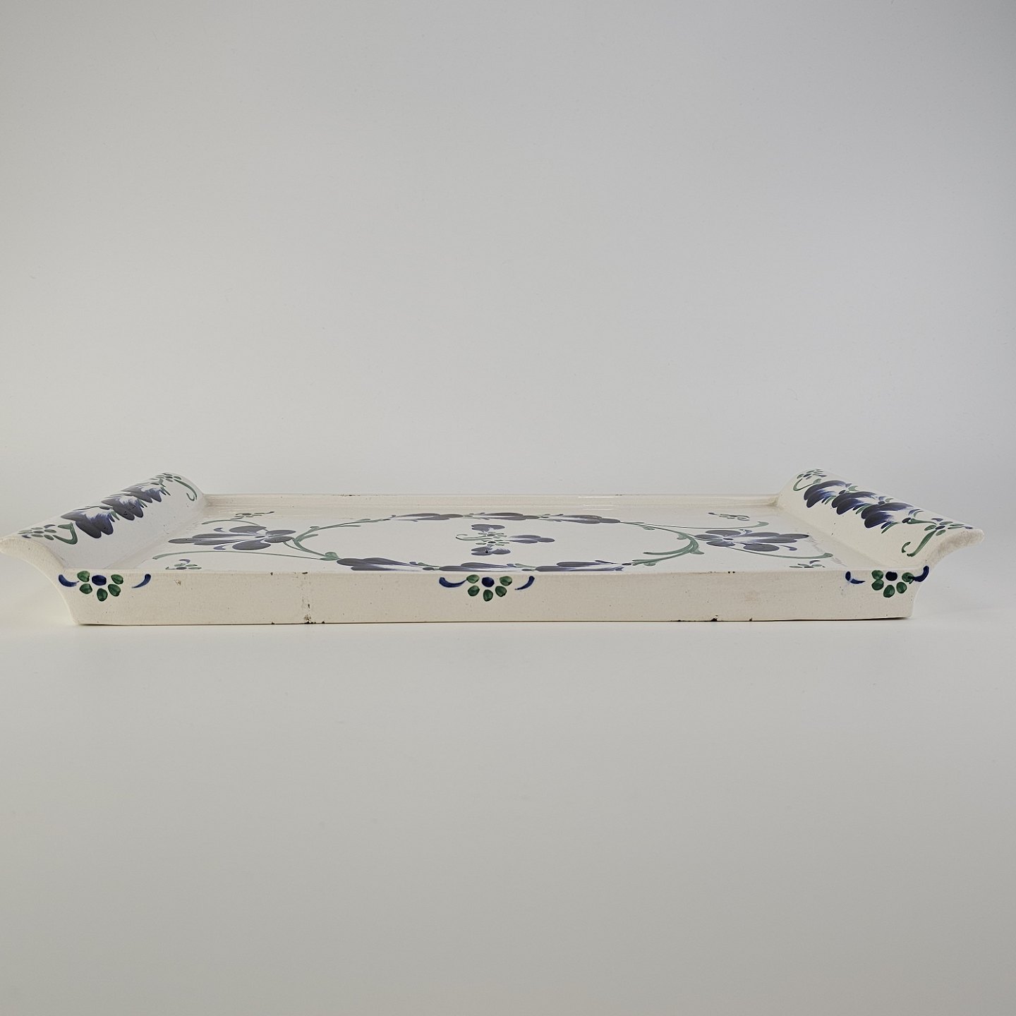 Rektangulært fad i hvid fajance fra stellet Blå Cenerarier