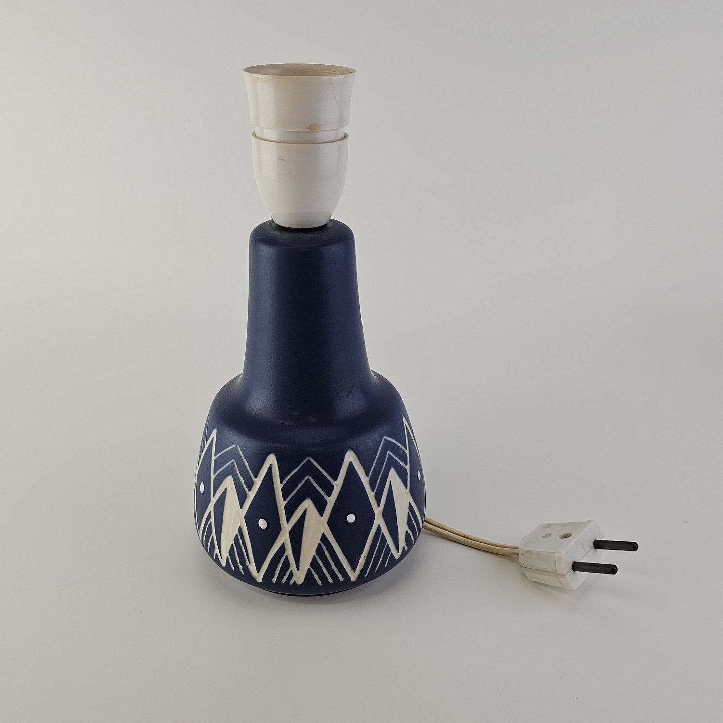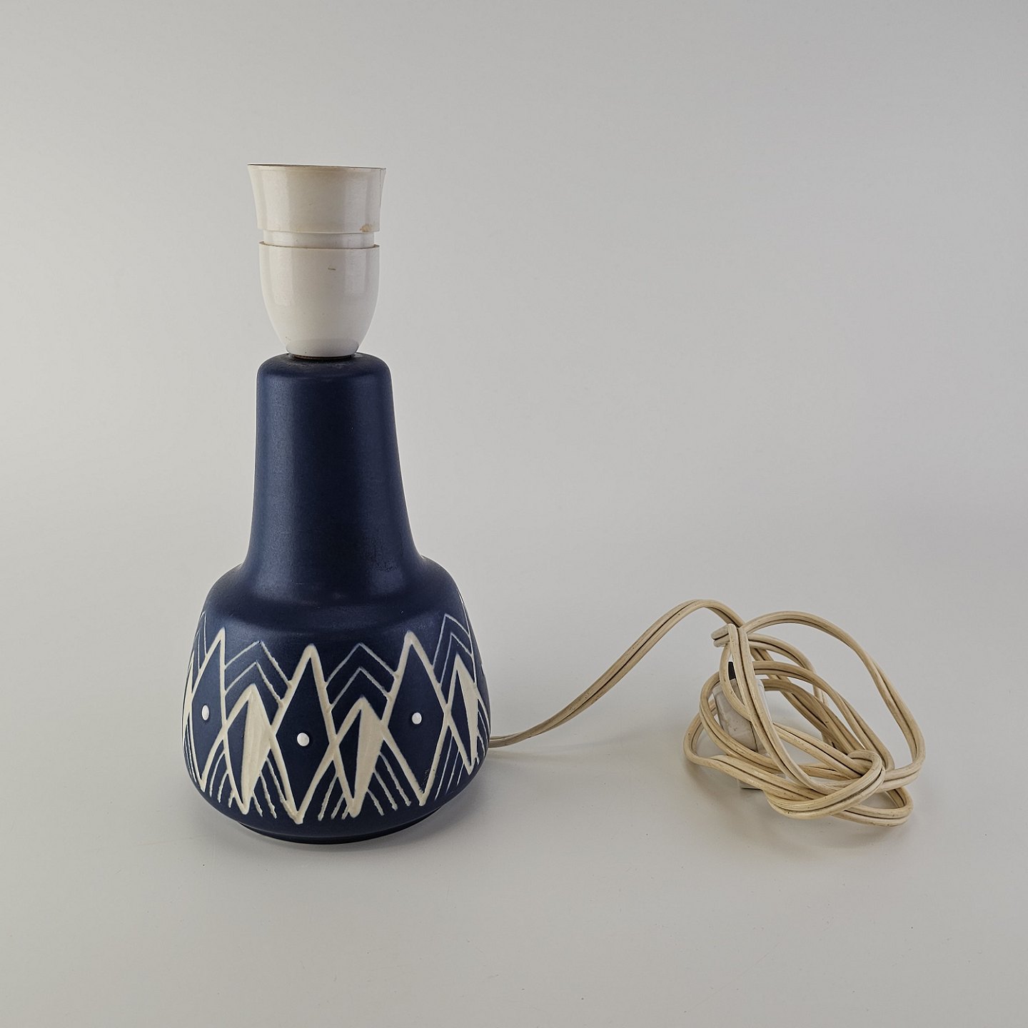 Lampefod i keramik med blå og hvid håndmalet dekoration