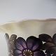 Oval jardiniere i fajance med dekoration af brun og lilla blomster