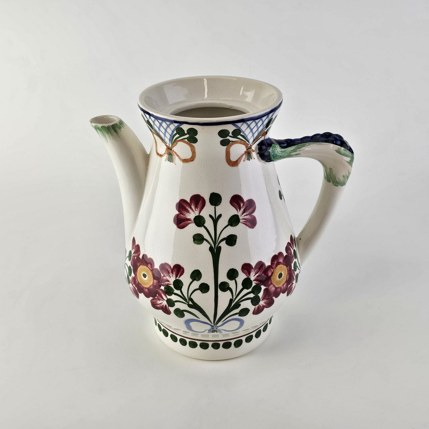 Servantekande i fajance med blomsterdekoration