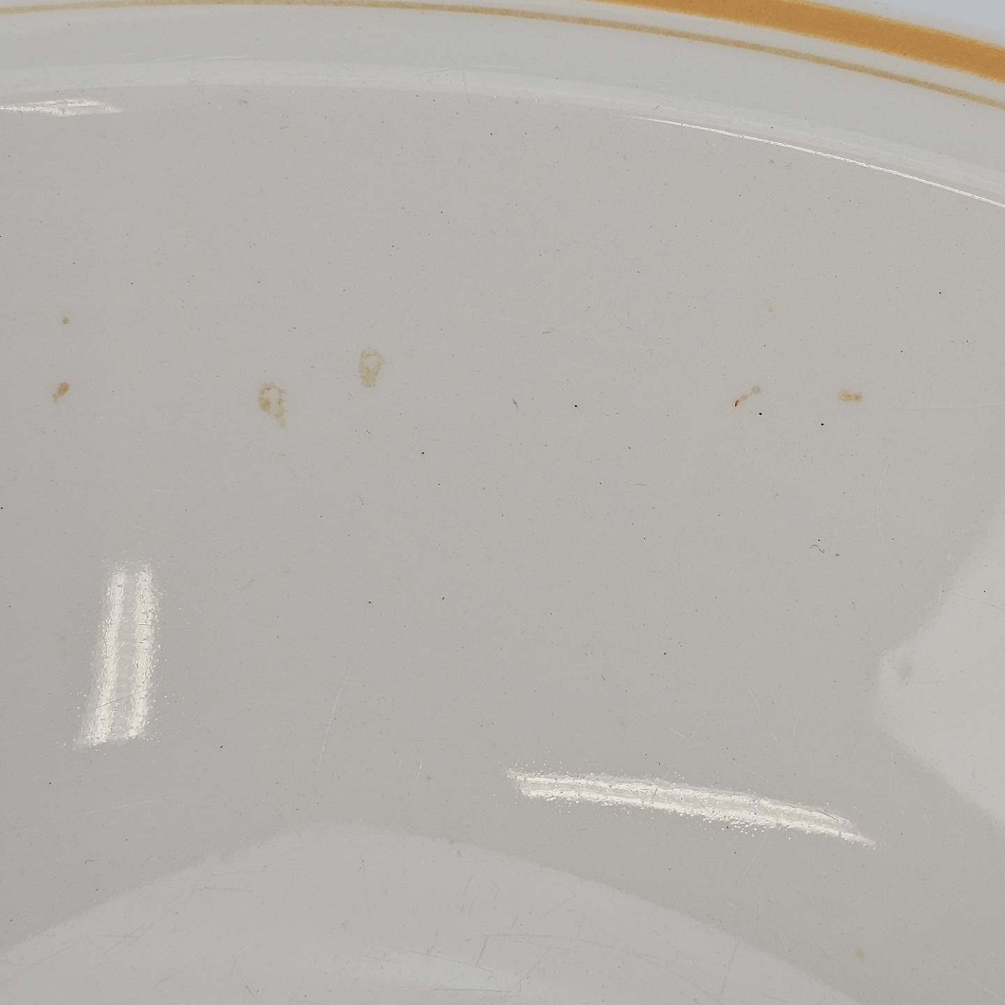 Fremstår med krakelering på låget og misfarvning på indersiden