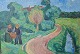 Oliemaleri på lærred monteret i hvidmalet ramme med motiv af en landevej