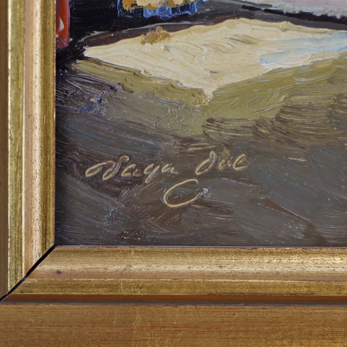 Leon Møller maleri Huse ved mark