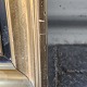 Oliemaleri på lærred monteret i guldramme med motiv af skibe på en strand