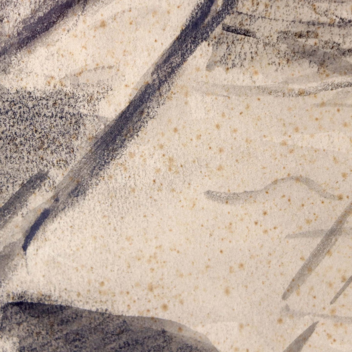 Indrammet akvarel og kultegning på papir i sortmalet træramme med bymotiv af Nellikestræde i Nørresundby fra år 1927