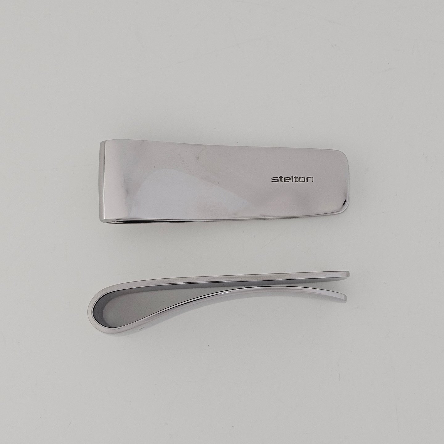 Sæt af fire servietringe i rustfrit stål med tilhørende servietter af sort stof