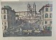 Bogtryk på papir med motiv af Piazza di Spagna i Rom, monteret i sort ramme