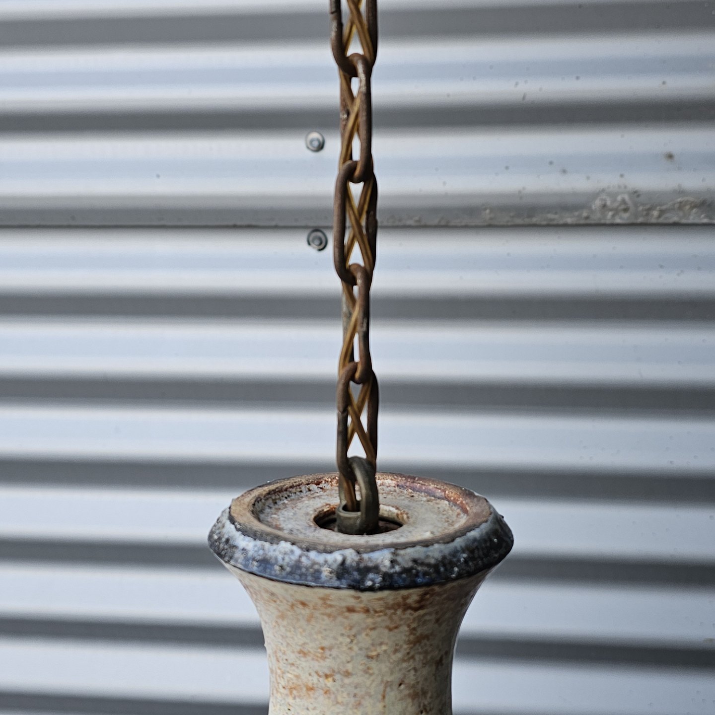 Pendel i keramik med bladmotiv og kæde til ophæng