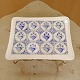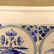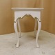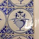 Antik hollandsk entrebord med svungne ben fra 1800-tallet i hvidmalet træ med guldmalet mønster og håndmalede delft kakler i blå streng med motiv af blomsterkrukker (Blumenpot) og hjørnedekoration i Wan Li stil.