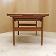 Sofa- og spisebord i samme møbel. Bordet er fremstillet i teaktræ og har to underliggende udtræksplader, som befinder sig på hver af bordets lang-sider.