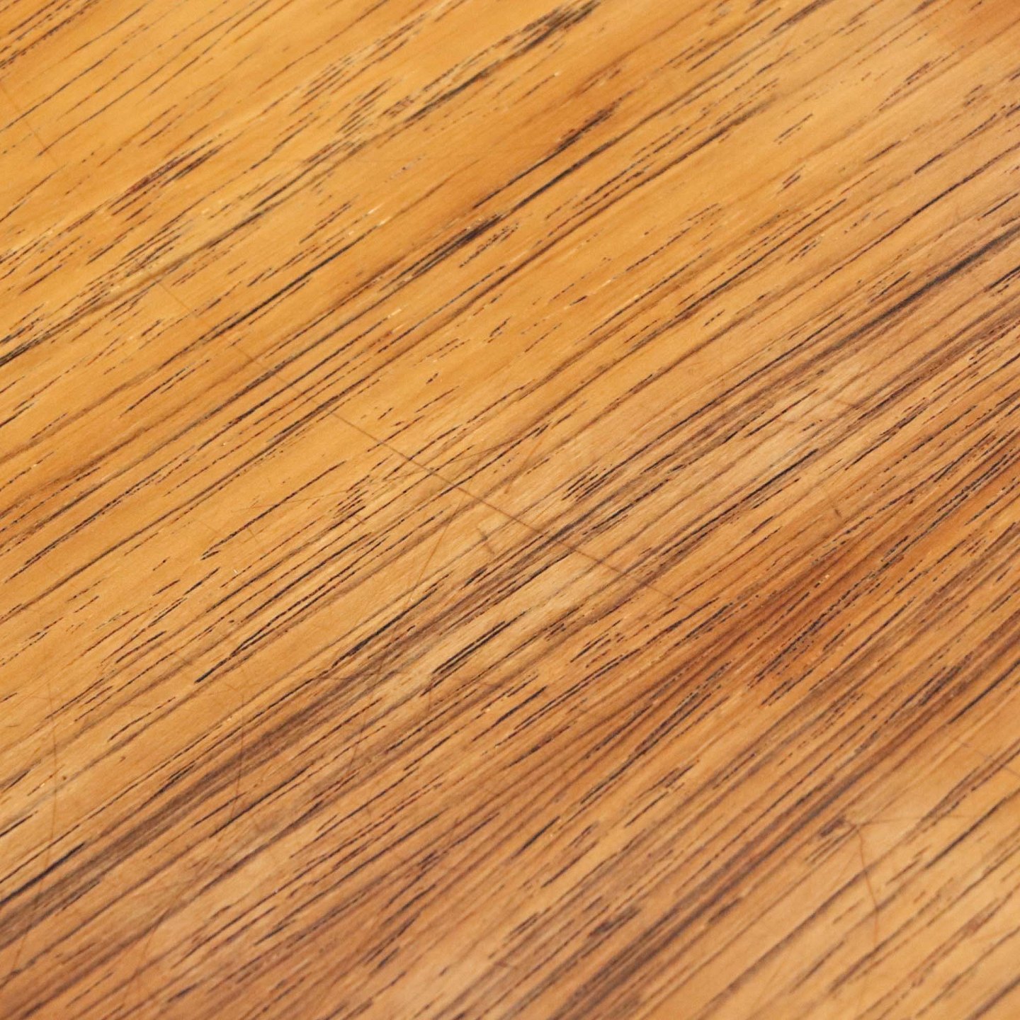 Fremstår med ridser på toppladen, vandmærker på udtrækspladen samt to mindre afslag på stellets topkant samt på et enkelt bordben.