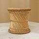 Mindre rund skammel med stel i bambus og sæde i flettet rattan.