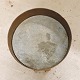Tøndeformet kumme til blomster med stel i lakeret bøgetræ og ramme i teaktræ med gyldne dekoraktionsbånd og aftagelig bundplade i zink.