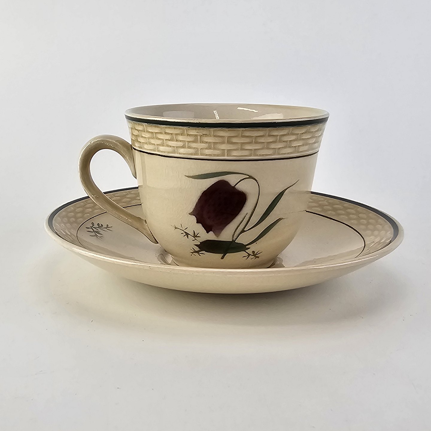 Kaffekop med underkop i fajance fra stellet Vibeæg