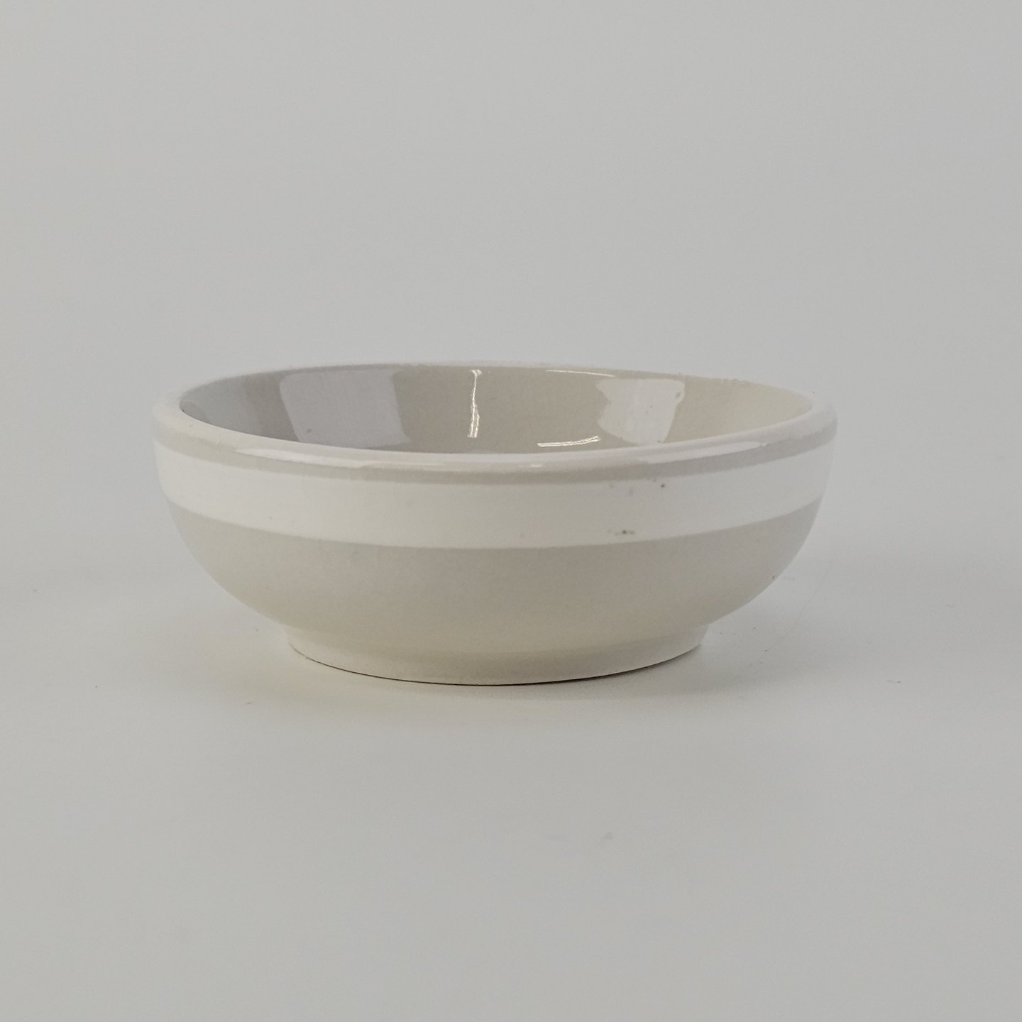Dorrit er stel lavet på stelform D i cremefarvet fajance dekoreret med bred hvid stribe